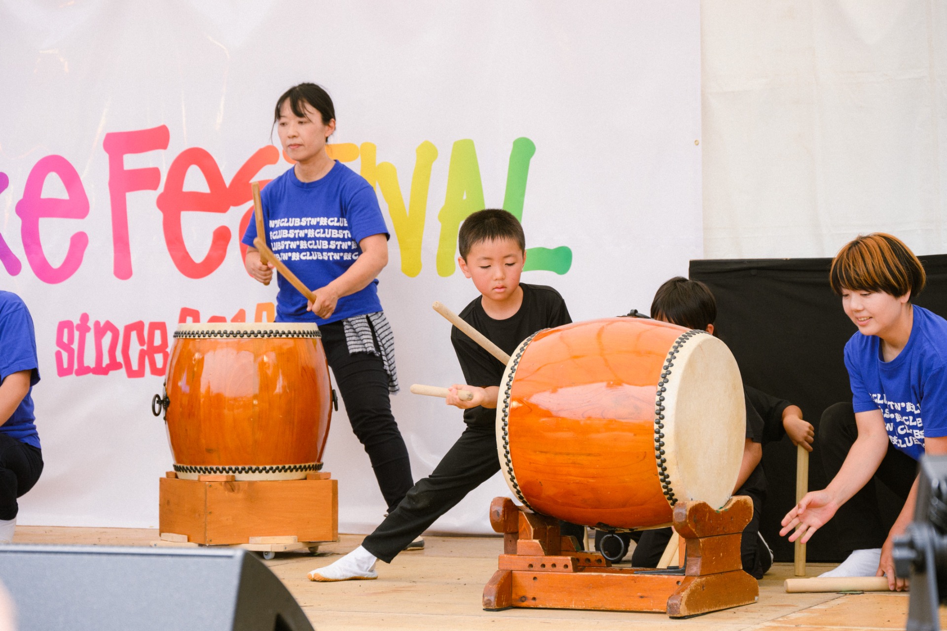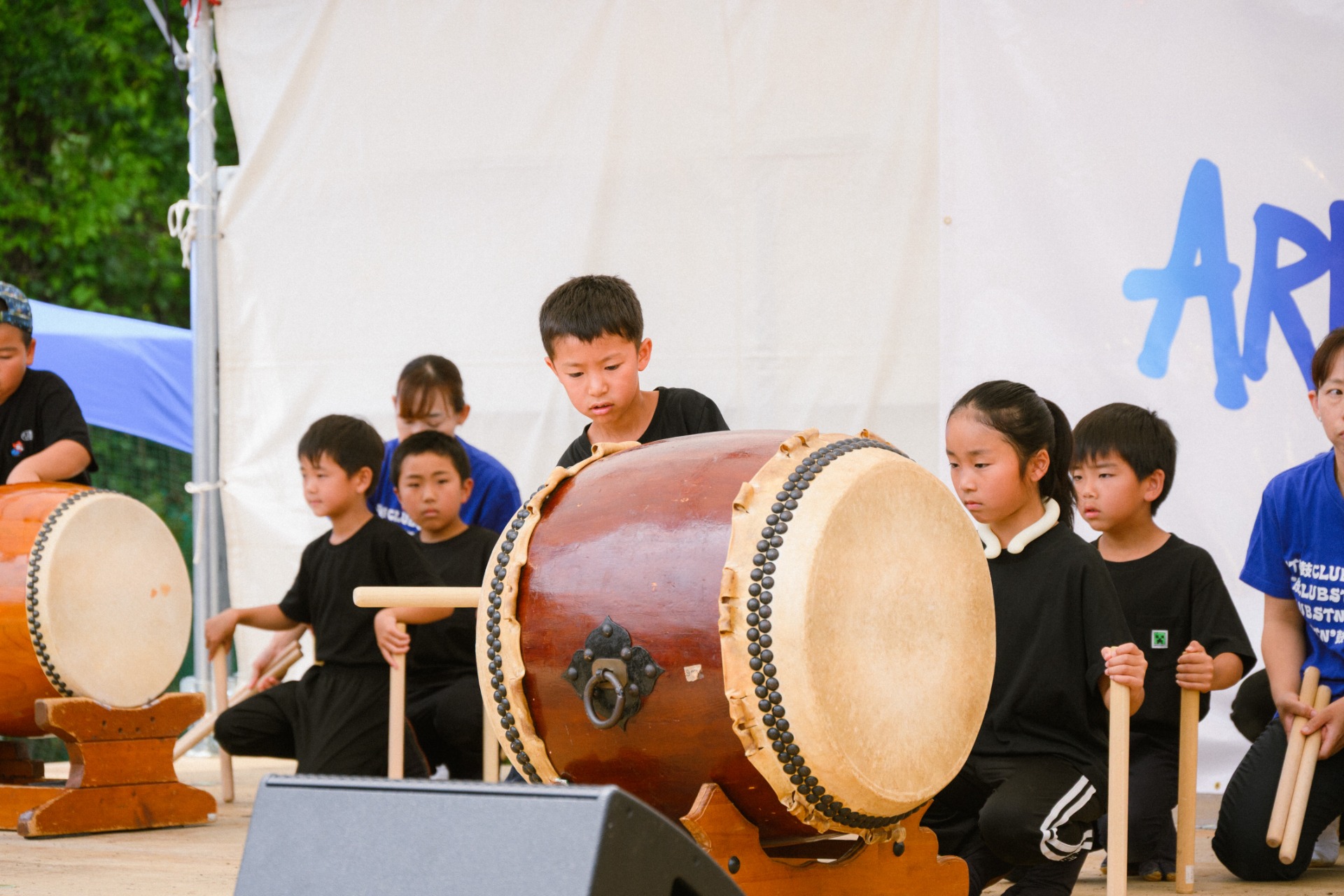 参加者を募って前半は園児と学童の歌を3曲うたい、可愛い声を会場に響かせていました。後半はそとのっ鼓駆楽舞(そとのっこクラブ)による三宅の和太鼓演奏。子どもたちは緊張しながらも素敵な演奏でお客さんを魅了してました(盛り過ぎかな?)