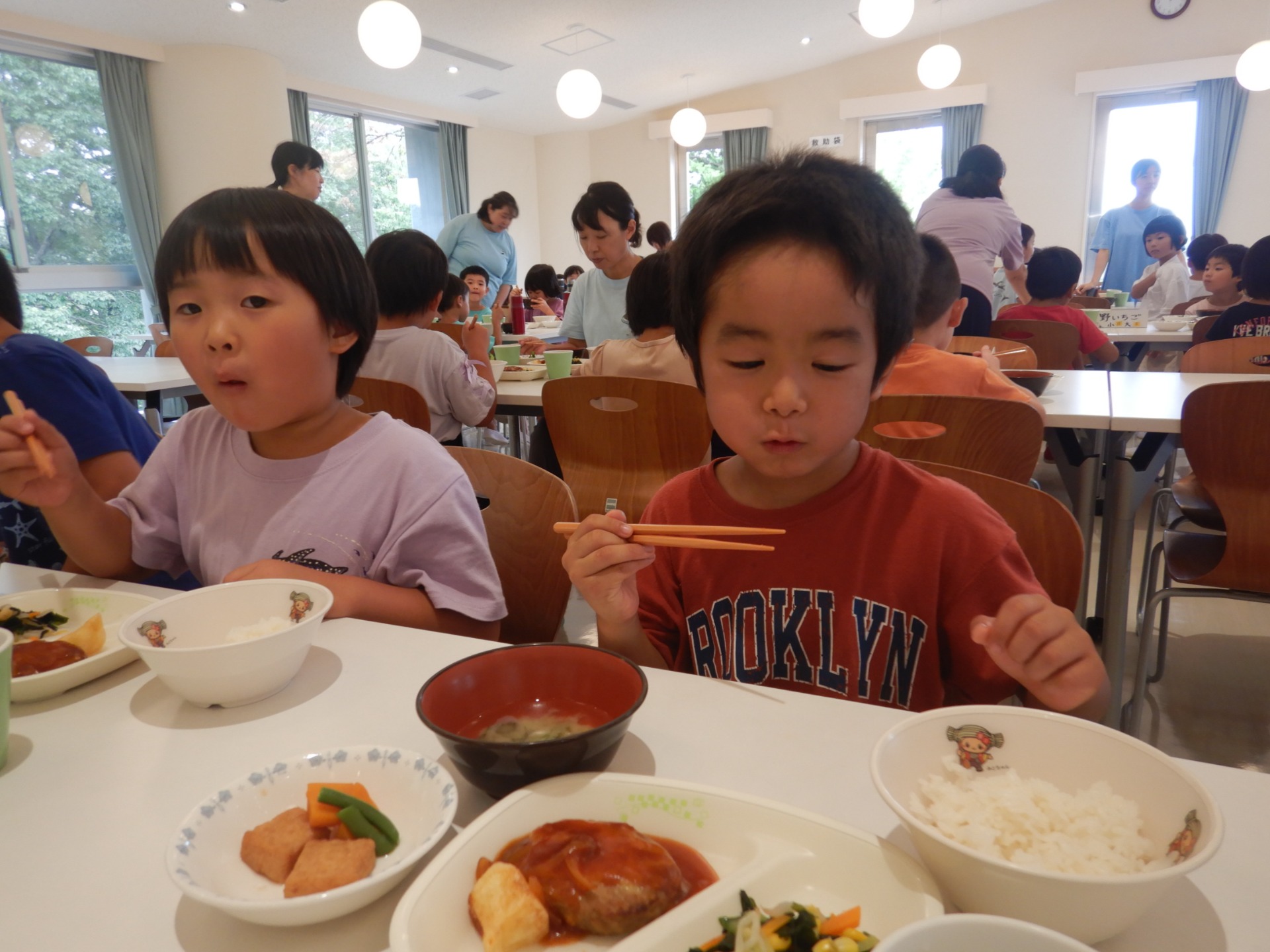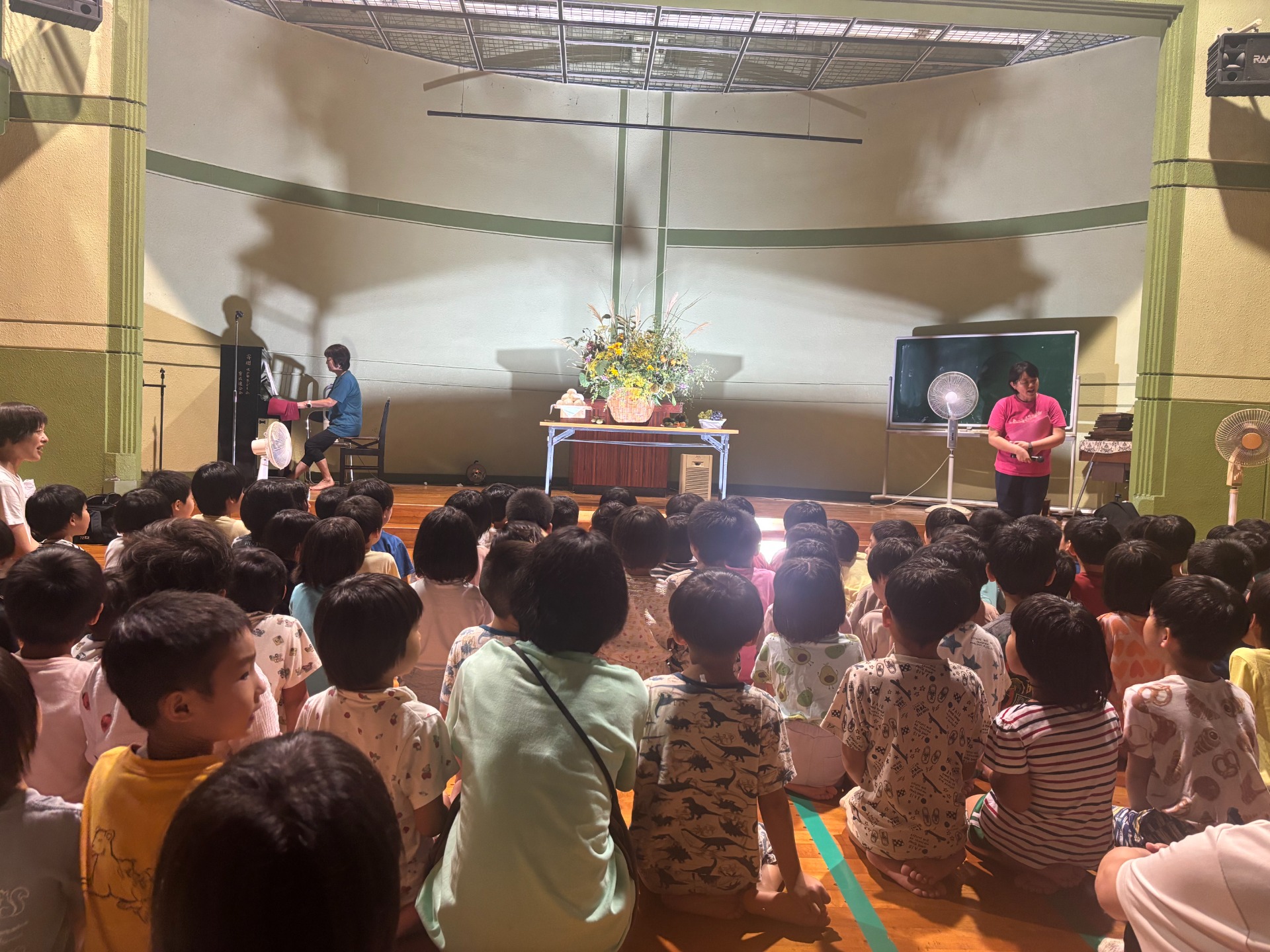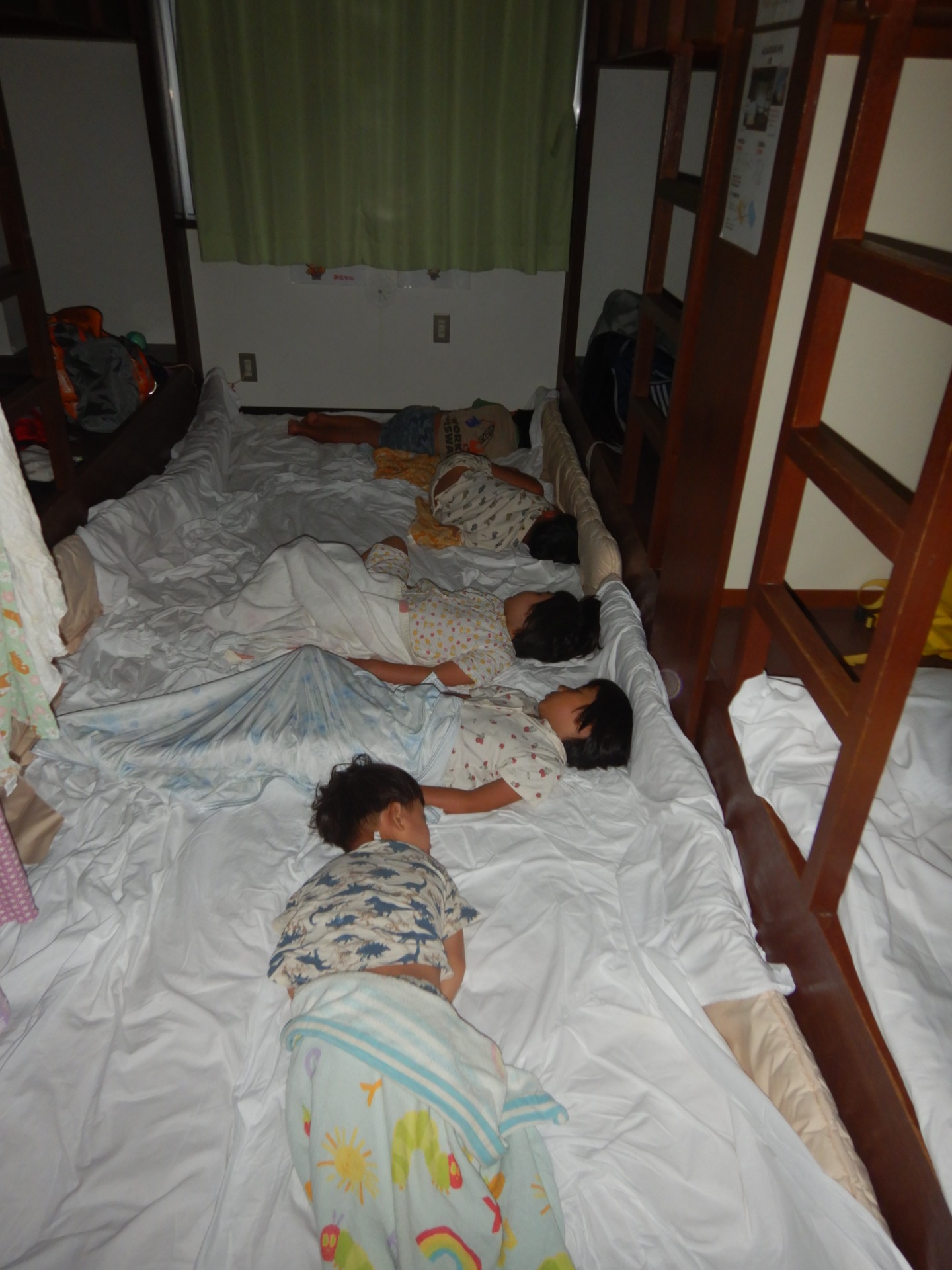 二泊三日の年長交流合宿に行きました。広い体育館で100人を超える年長児でリズムをしました。合宿前は「ドキドキする」と言っていた子どもたちでしたが、楽しいリズムとたくさんのともだち、仲間たちに刺激され最終日には「もっとお泊りしたい」というほどに。次に会うときはもっと素敵になった姿をお互い見せようねと終わりました。