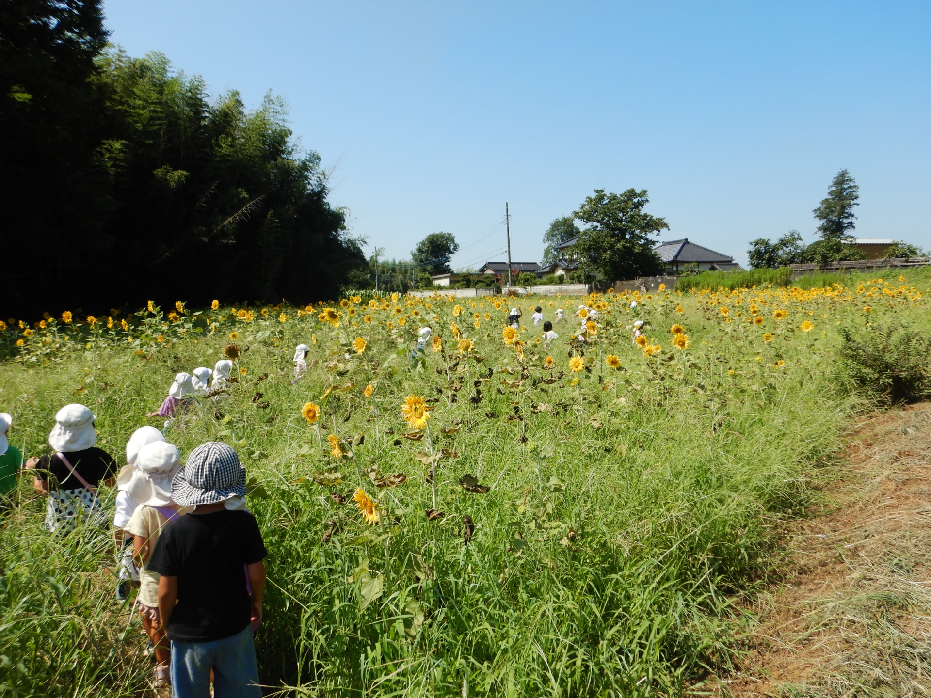 つくば市の中根農園にあるひまわり迷路に行ってきました。6月に蛍狩りに行けなかった代わりとして今回は4歳児5歳児2クラス合同でした。