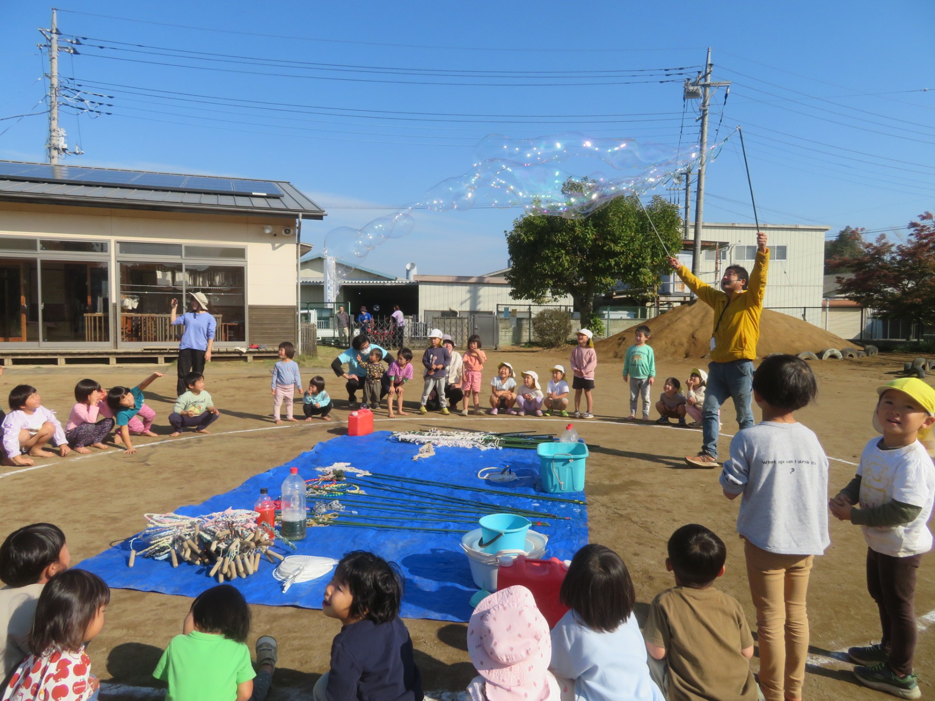 天気も良かったのでシャボン玉が空でキラキラしてました